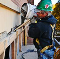 A technician is removing old sealant at the brick perimeter. Wilson Restoration is careful to remove all remnants of old sealant and replace with new sealant as specified by the Architects.